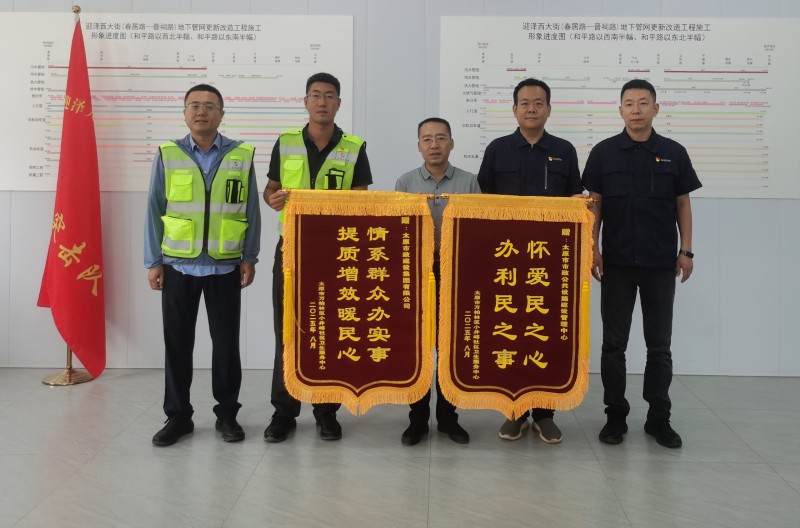 8月29日,太原市政集團收到太原市萬柏林區(qū)小井峪社區(qū)衛(wèi)生服務中心送來的 “情系群眾辦實事 提質(zhì)增效暖民心”錦旗,感謝太原市政集團在迎澤大街(西段)地下管網(wǎng)更新改造工程以過硬的工程質(zhì)量和高效的推進速度,高標準開展施工任務,極大改善附近居民的出行條件和生活環(huán)境。