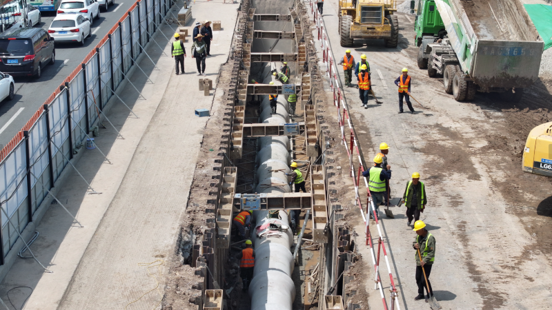 太原市政集團(tuán)堅(jiān)決扛牢使命擔(dān)當(dāng),強(qiáng)化統(tǒng)籌、多方聯(lián)動,想盡一切辦法,克服一切困難,全面對標(biāo)看齊“迎澤標(biāo)準(zhǔn)”,堅(jiān)持以全局觀念和系統(tǒng)思維謀劃推進(jìn)項(xiàng)目建設(shè),采用半幅封閉施工、平行流水作業(yè)方式,克服工程體量大、施工內(nèi)容繁重、建設(shè)工期緊張等困難與挑戰(zhàn),一體推進(jìn)道路、管線、照明、沿線景觀等建設(shè)任務(wù)。項(xiàng)目伊始,規(guī)劃“導(dǎo)航圖”,研討節(jié)點(diǎn)安排、工序銜接、資源配置等關(guān)鍵環(huán)節(jié),制定十余套專項(xiàng)施工方案,優(yōu)化組織設(shè)計(jì),形成管理閉環(huán);繪制“進(jìn)度表”,建立分級負(fù)責(zé)、動態(tài)調(diào)整的進(jìn)度管控體系,提升9個工區(qū)自主管理效能,錨定工期目標(biāo),加快施工效率。施工過程中,掃清“攔路虎”,采用鋼板樁支護(hù)、分層開挖、放坡開挖工藝,克服地下管線復(fù)雜、開挖深度大、地下水高等難點(diǎn),確保管網(wǎng)升級與地鐵運(yùn)營和諧并行;保持“攻堅(jiān)態(tài)勢”,針對重難點(diǎn)部位,提前制定專項(xiàng)方案,全部進(jìn)行技術(shù)交底,著重加強(qiáng)安全、質(zhì)量管控,形成高效施工態(tài)勢。注重以人為本,提升“施工溫度”,細(xì)化各項(xiàng)便民、利民措施,最大限度降低對市民日常生活的影響,保障通行需求;擦亮“市政名片”,開展道路清理志愿服務(wù)活動,用實(shí)際行動為城市“美容”,展現(xiàn)國企擔(dān)當(dāng)。