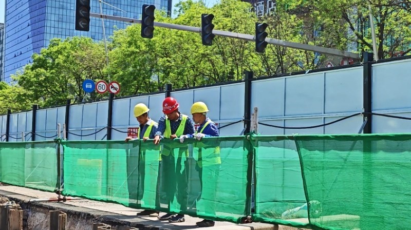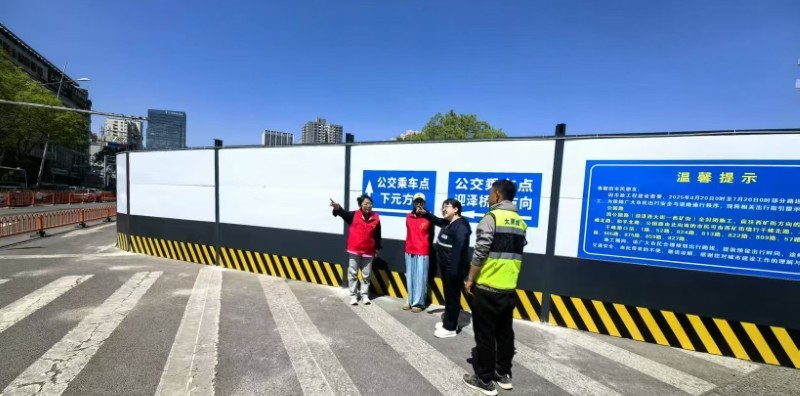 施工以來(lái),集團(tuán)公司全程安排專(zhuān)人值守地鐵口交通導(dǎo)行,多舉措升級(jí)現(xiàn)場(chǎng)安全防護(hù)設(shè)施——開(kāi)辟行人安全通道,協(xié)調(diào)劃定“公交專(zhuān)用通道”,在井蓋四周設(shè)置緩坡與明黃警示帶,為圍擋加裝柔和燈帶……以細(xì)微處的貼心舉措,實(shí)現(xiàn)“施工便民不擾民”。