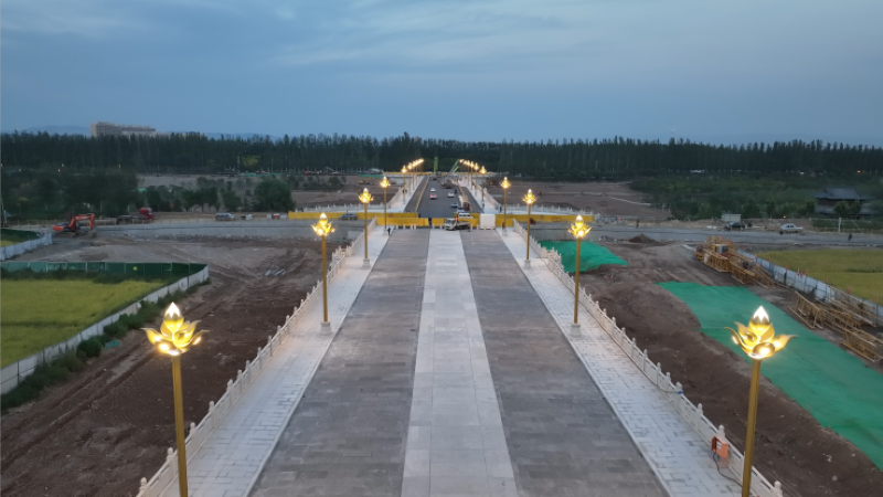 凈因橋整體裝修風格以“汾河出水第一橋”為理念,突出“首橋之風、古樸厚重、大氣自然”。橋梁欄桿選用青白石欄板,采用忍冬紋、蓮花紋、祥云紋、鏤空如意組合紋樣,安裝過程中從勾縫到密封,施工人員精工細作、寸寸抹平,確保欄桿整體平整美觀,讓大橋更具細節(jié)韻味;橋身墻體選用黃金麻,第四跨主拱上設避水獸,寓意風調雨順、國泰民安,從墻身施工到石材安放,施工人員高空作業(yè)、耐心細致,確保橋梁整體裝飾效果;大橋路燈采用蓮花燈頭,寓意清凈之蓮,從線路安設到路燈架設,施工人員精細施工、安全作業(yè),亮化施工與橋梁結構、裝飾材料緊密結合、隱蔽布線,彰顯路燈美觀大方。凈因橋師法古作,結合現(xiàn)代工藝,經(jīng)久耐用、古樸精致,與自然山水相融,與古寺古殿相連,極具首橋之風。全體施工人員通過嚴謹施工與嚴格管理,將設計藍圖轉化為品質工程。
